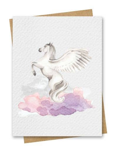 Watercolour Pegasus Blank Greeting Card w/ Kraft Envelope